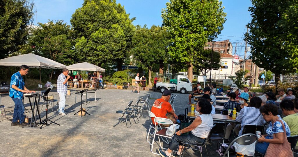 自治会活動は年一回の「納涼のつどい」(夏祭り)とマンション前面(栄区役所隣)の本郷公園の清掃を月一回午前中に自治会員有志で行っています。
